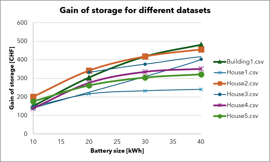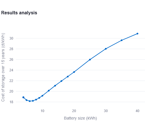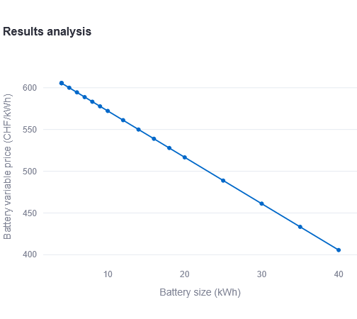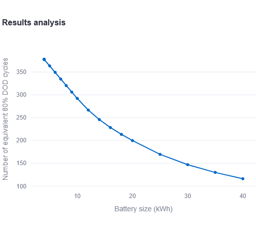 Lorsque la batterie devient grande, elle est de moins en moins utilisée car elle n’est pas vidée en été (pas assez de consommation la nuit) et pas remplie en hiver (pas assez d’excédent de production). Une petite batterie est cyclée une fois par jour, mais une grande seulement 100 fois par années et non 365 fois.